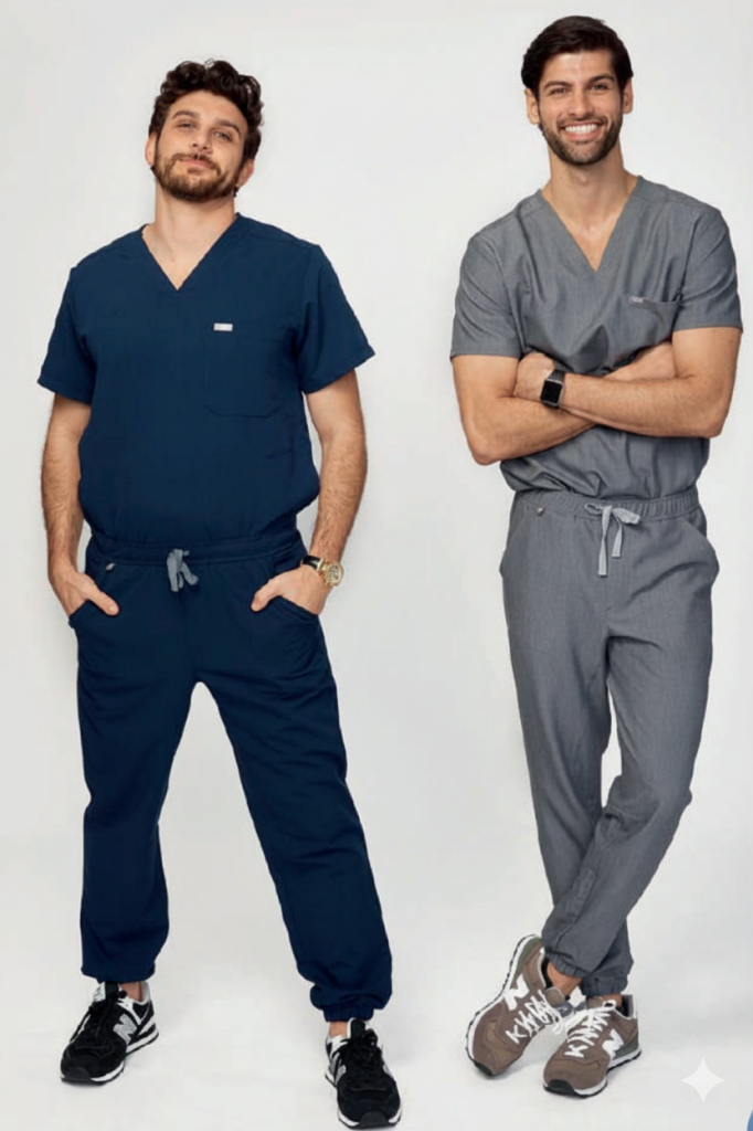 Cierre a presión.bolsillo en el pecho con ranura para bolígrafo reforzada, parte superior, ajuste clásico, unisex, cuello en V, tres bolsillos laterales, pantalones cargo, cierre elástico, pantalones de pierna recta